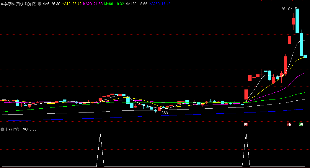 该公式,描述4天的股票形态,认为该形态上涨概率极大,所以编写了这个公式。