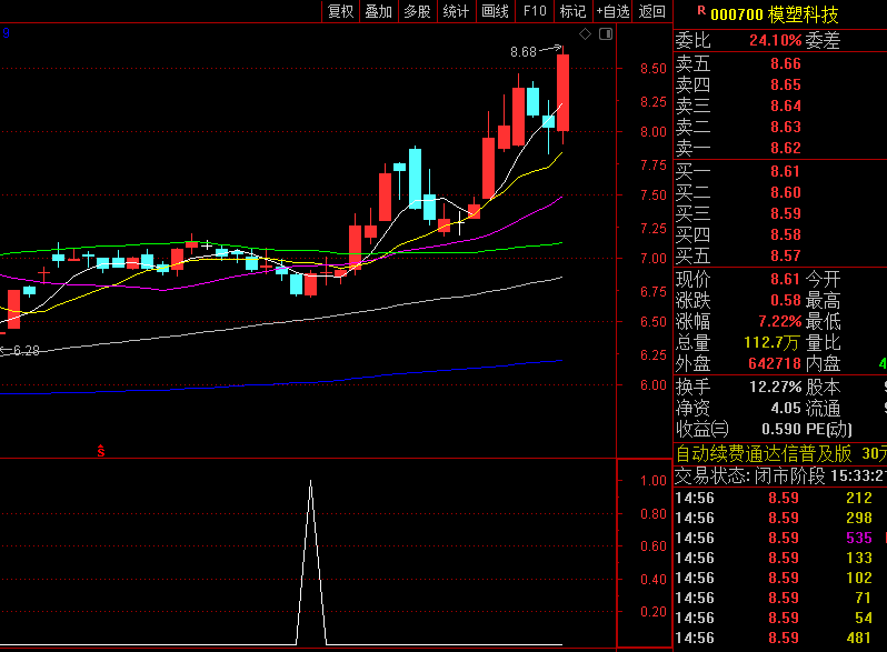 最后,该指标通过综合KDJ、CCI、均线和成交量的信号,生成了一个选股条件。