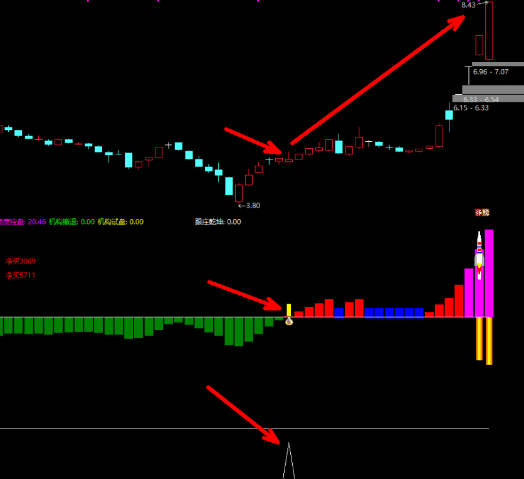 -当上穿0轴时,表明机构资金可能正在试盘,发出短期买入信号(机构试盘)。