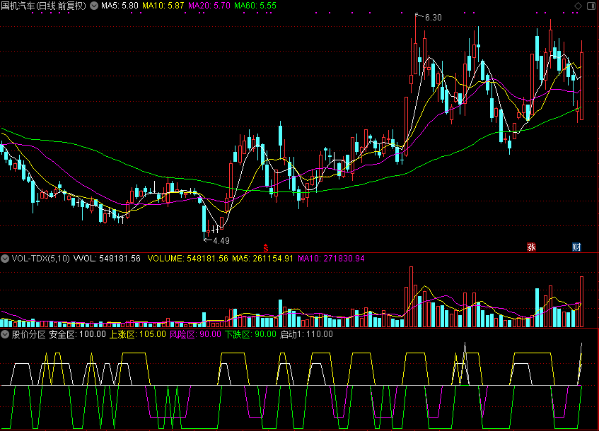 上涨区:IF((FSL>=PP6) AND PP6<=PP ,105,90);