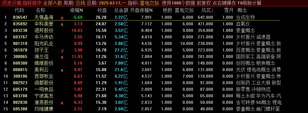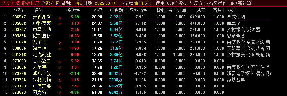 雷电交加通过分析竞价期间的成交量、价格涨幅、资金流入等数据,结合技术指标如均线、动量、波动率等,筛选出具备上涨潜力的个股。