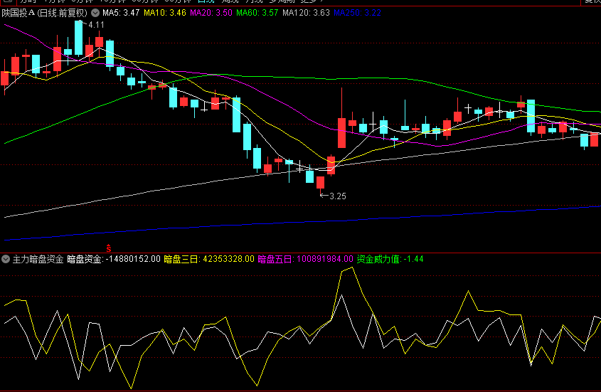 通达信【主力暗盘资金】副图指标,模仿某平台的收费版,帮助分析主力资金动向!