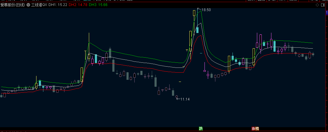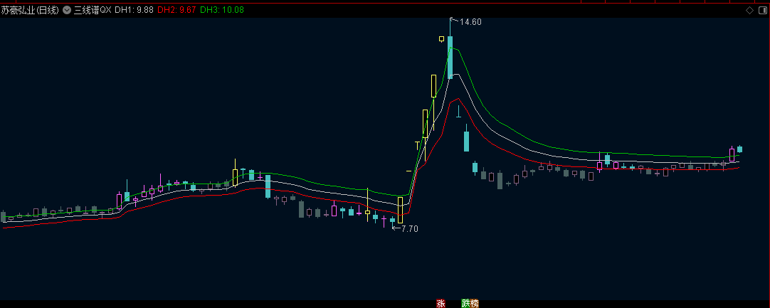 【极简之作】通达信【三线谱QX】主图指标,做了细微指数级平滑调整,DMA顶底三线谱+异动范围标记!