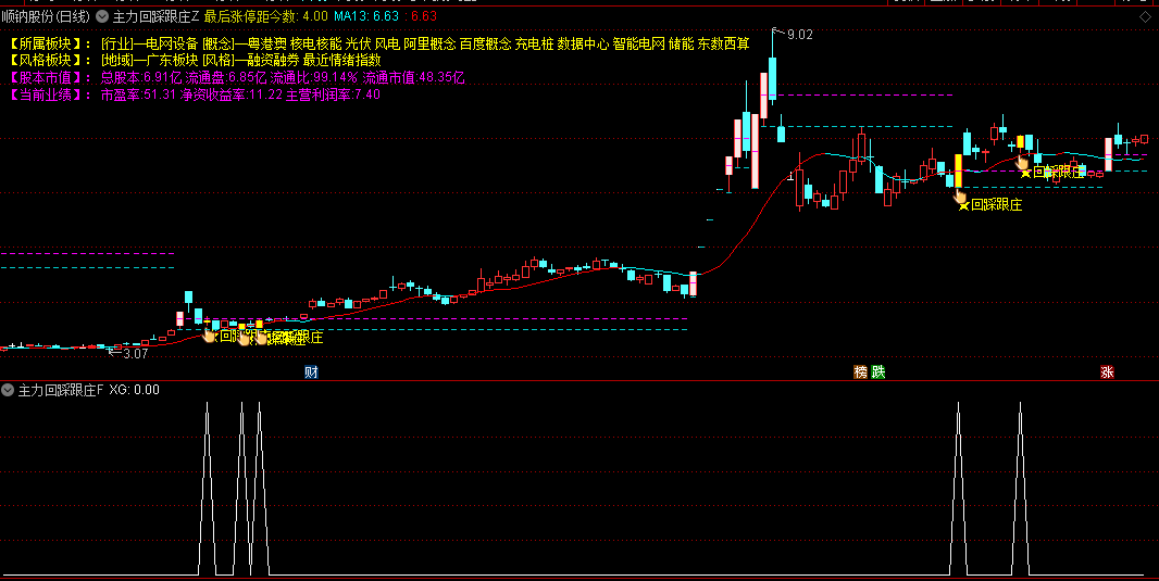 通达信【主力回踩跟庄】主图/副图选股指标,利用主力试盘回调特性,趁主力回踩跟庄捉主升浪!