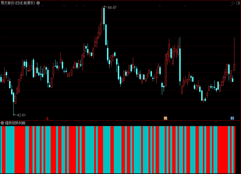 可以用来分析历史走势,特别是强势区的走势,红色强势,蓝色弱势,简单明了。