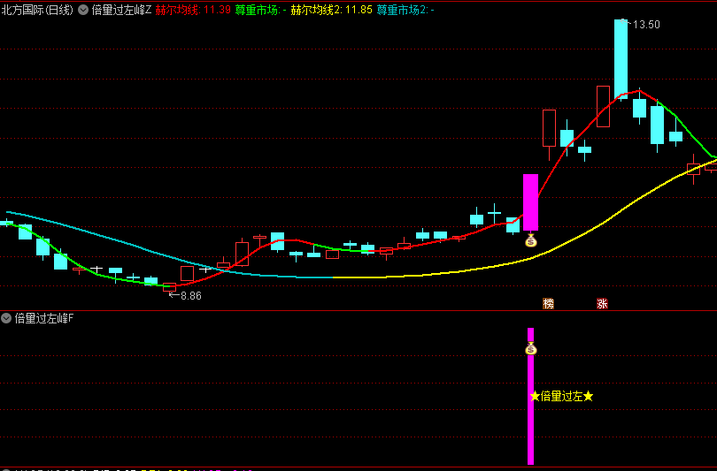 当股价突破左峰并创出新高时,成交量显著放大即倍量,这往往意味着主力资金正在积极抢筹,推动股价进一步上涨。