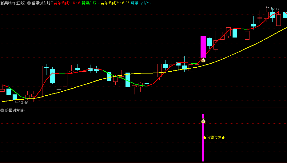 2.倍量的意义:当股价突破左峰时,成交量显著放大,通常是前一交易日成交量的两倍或更多。