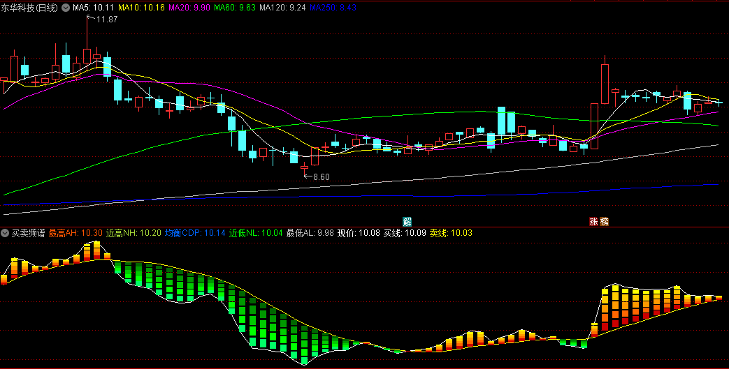通达信【买卖频谱】副图指标,波段上车风险控制+CDP做T数据,方便做T高抛低吸!