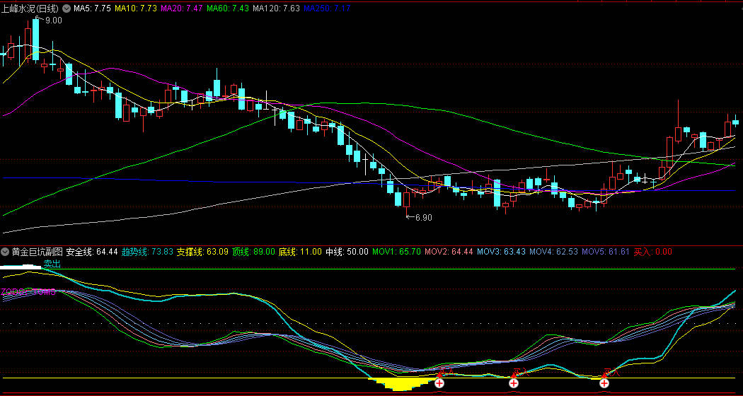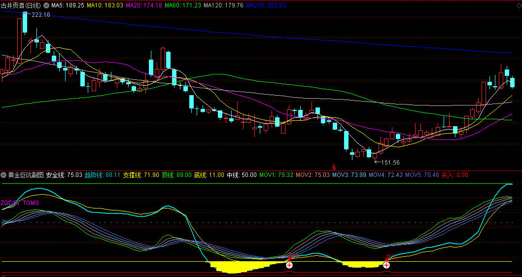 黄金巨坑指标正是基于这三项原则,并融合多个公式编写而成,非常适合中长线投资者以及善于在低位寻找机会的朋友,但不适合短线和超短线操作者。