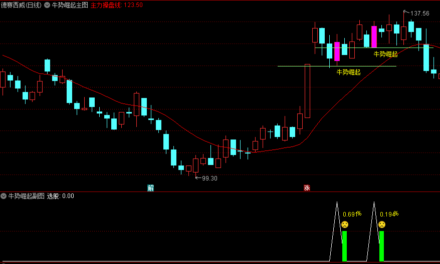 【牛势崛起】指标,主图、副图、选股,回踩关键支撑位后的拉起思路,无未来函数,手机电脑通达信通用指标说明:买点精准判断