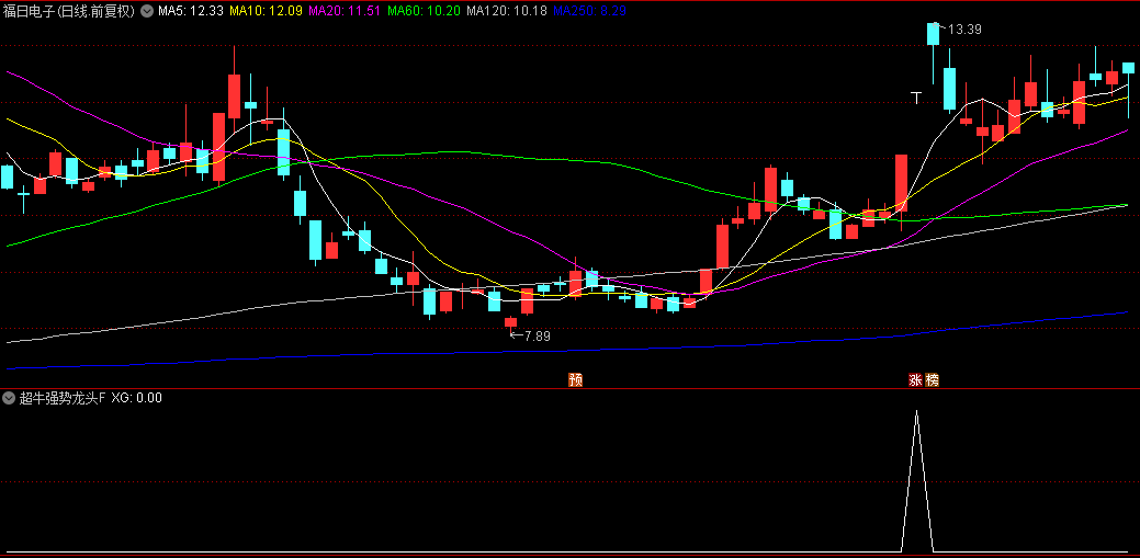 超牛龙头信号是本指标的核心,结合了财富线、顶线、涨停板识别以及飞狐线、强势线、支撑线等多个指标。当多个条件同时满足时,超牛龙头信号触发,表明该股票具备成为市场龙头的潜力,后续有望出现大幅上涨。