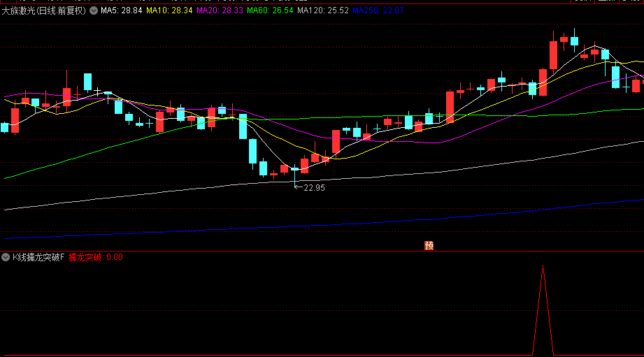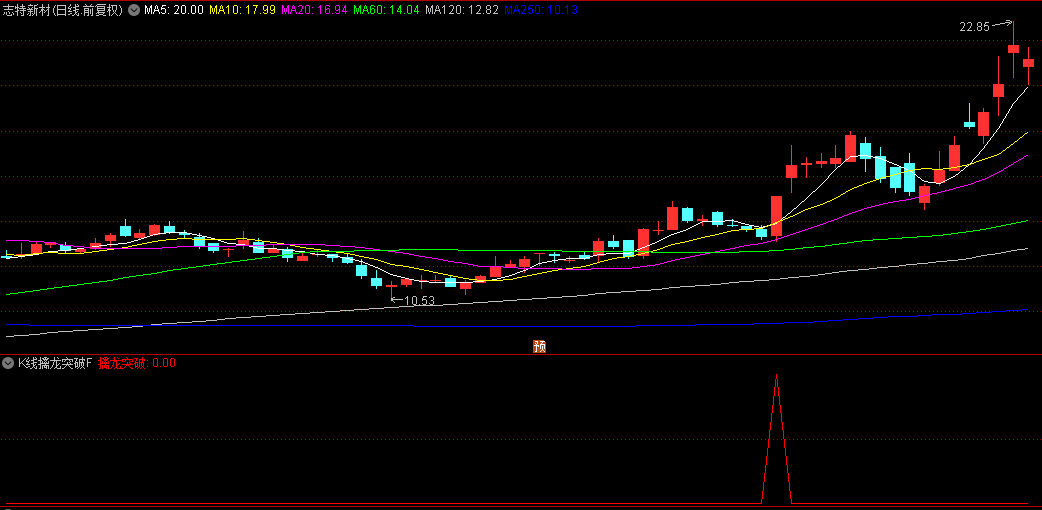 精选【K线擒龙突破】副图+选股指标,K线突破+均线系统多重信号,帮助捕捉潜在的强势股