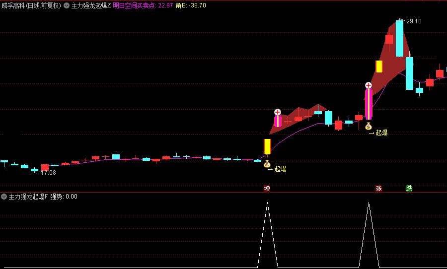通达信【主力强龙起爆点】主图/副图/选股指标,量价突破擒牛战法,主力跟庄突破前高捉强牛!