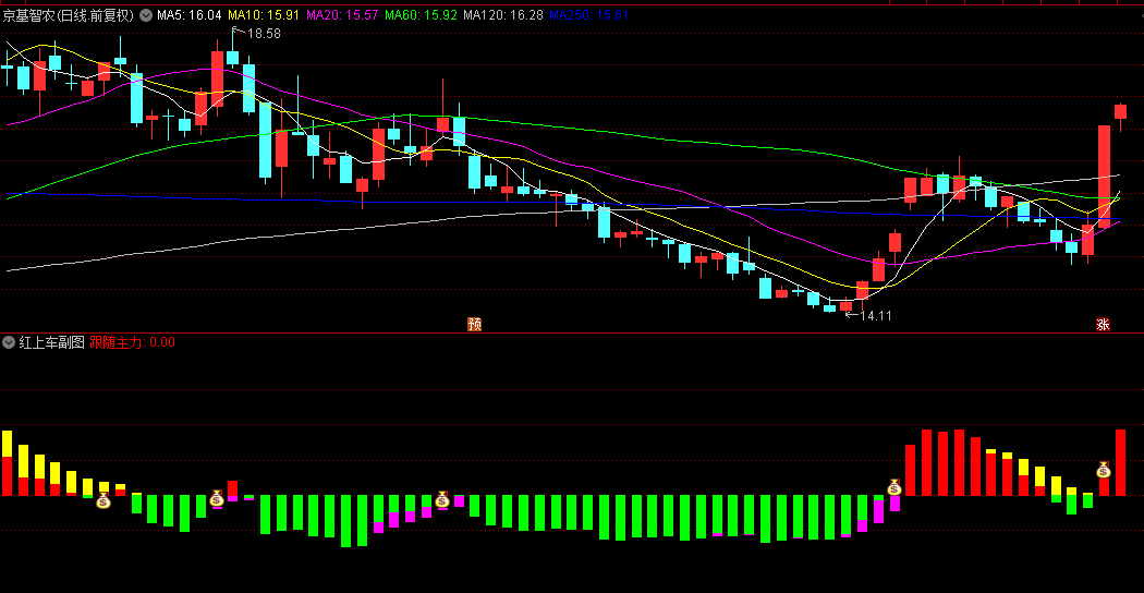 通达信【红上车】副图/选股指标,三色柱捕捉主力动向,金叉死叉精准择时!