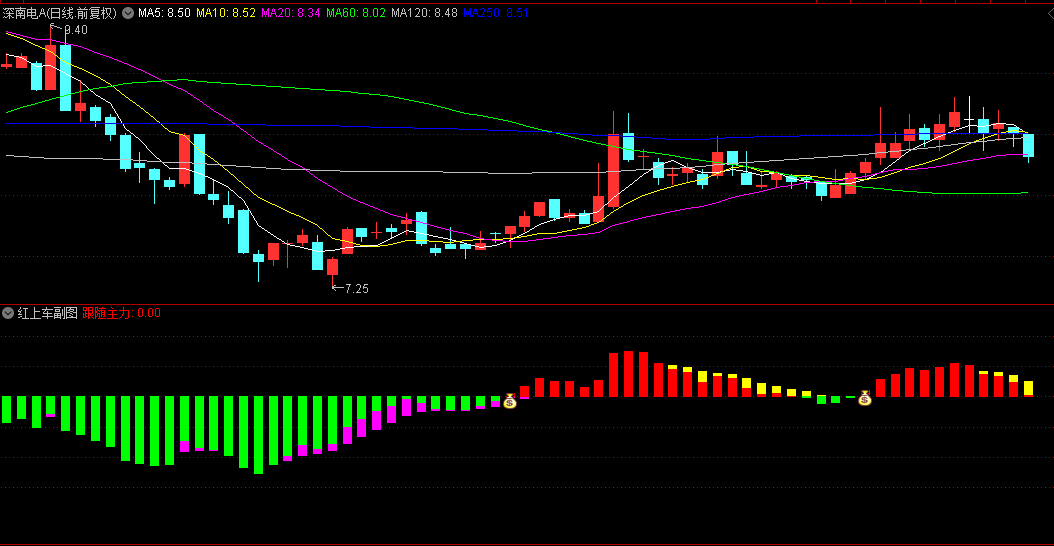 本指标通过颜色心理学强化视觉记忆,红色激发行动欲,绿色触发风险警觉,黄色唤起谨慎情绪,符合行为金融学的交易心理设计。