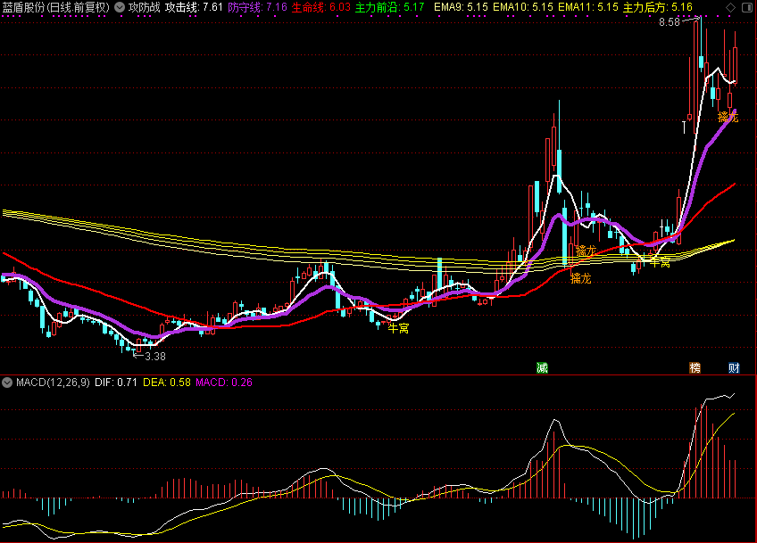 主力前沿:EMA(CLOSE,153),COLORC8FFFF,LINETHICK;