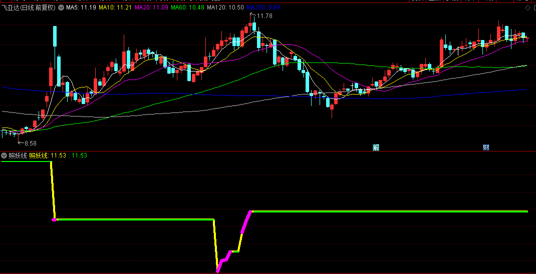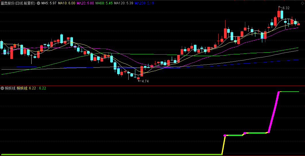 通达信【照妖线】副图指标,配合简单均线,有效识别趋势启动窗口!