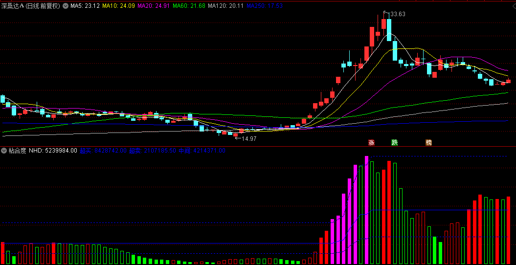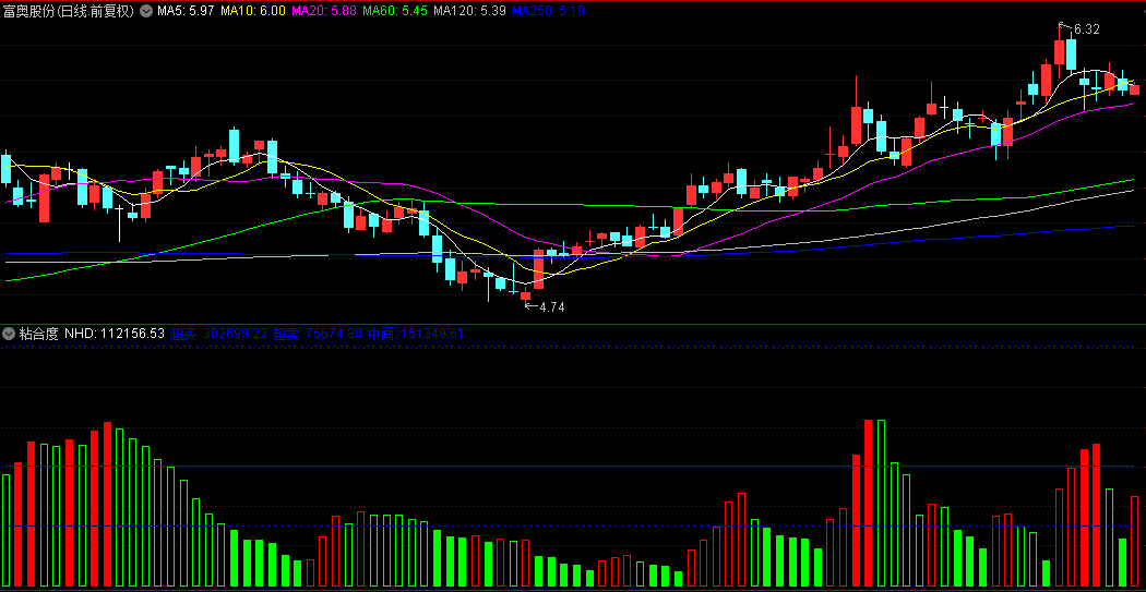 通达信【粘合度】副图指标,实心绿柱后出现红柱视为买点,源码无未来!