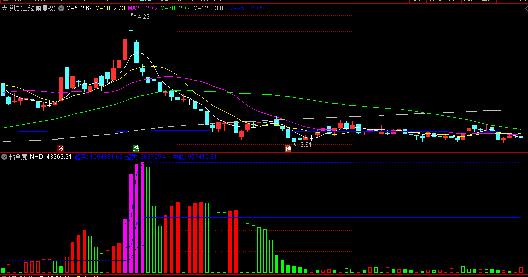 3.紫柱出现后若伴随成交量萎缩,则暗示顶背离形成