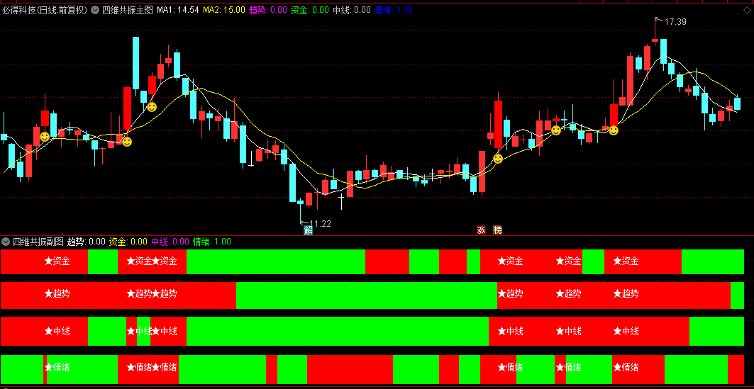当四个维度同时满足做多条件时,系统会生成"共振笑脸"信号。