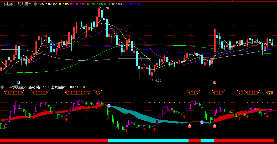动量强化特征:周线红柱(KD差值)连续放大且成交量突破5日均量
