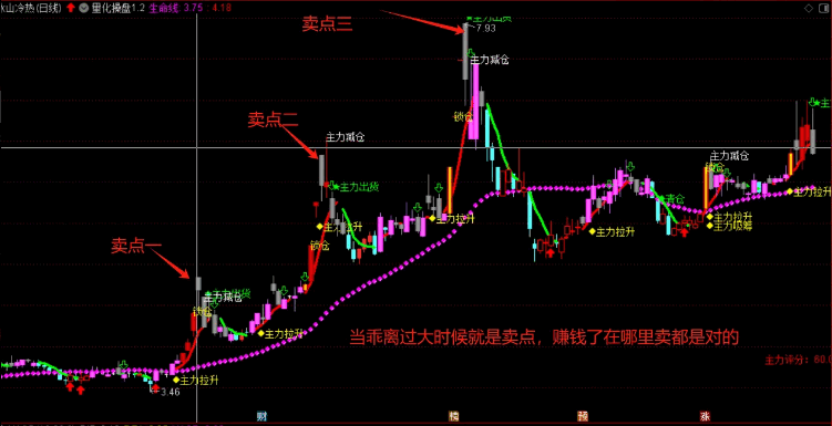 卖点,当正乖离过大时候考虑卖出,另外软件的其他细节可以自行研究!