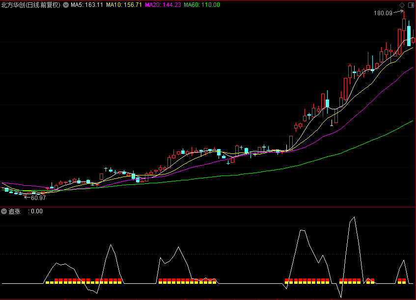 STICKLINE(XYSQS2>=REF(XYSQS2,1)AND XYSHSL>1,0,40,2,0),COLORYELLOW;