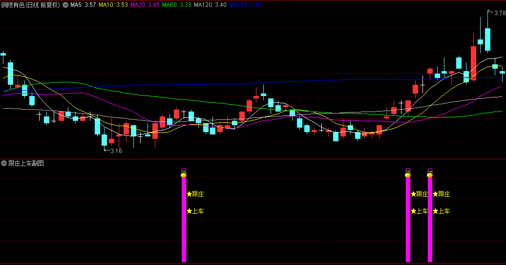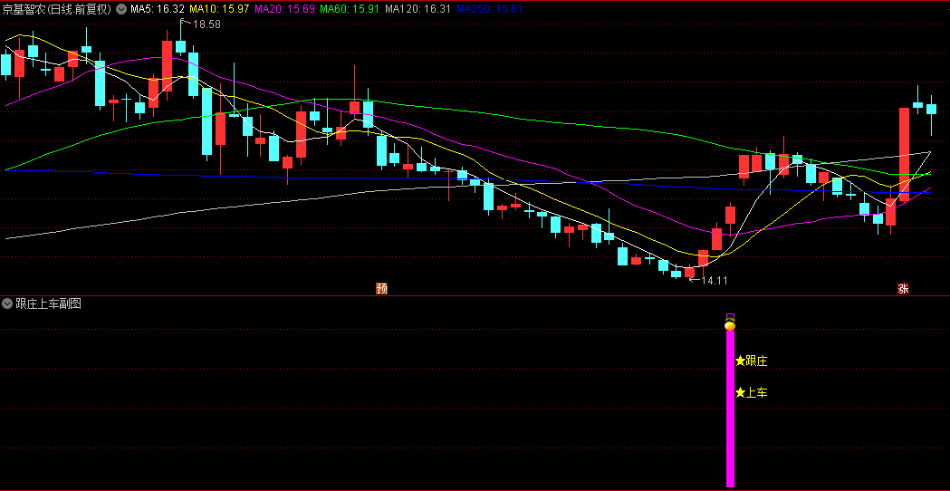跟庄上车指标不同于普通的技术分析工具,它通过独特的算法实现了量价共振的精准捕捉。