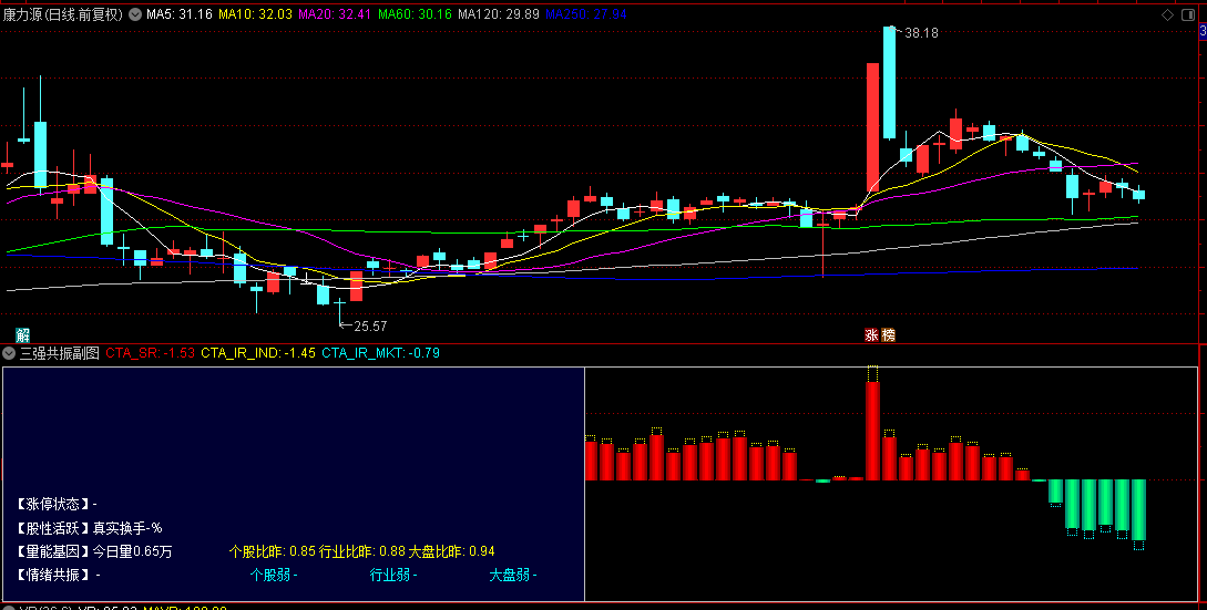 该指标特别适合捕捉机构主导的趋势行情,通过量化市场情绪与资金流向,将复杂的强弱对比转化为直观的决策信号。