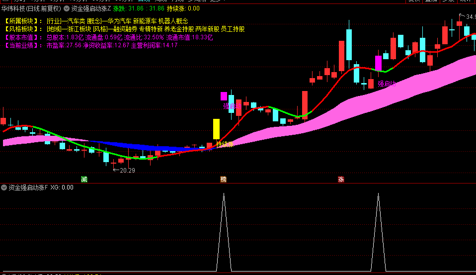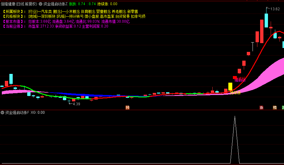 "强启动"紫红色信号为首次建仓点;