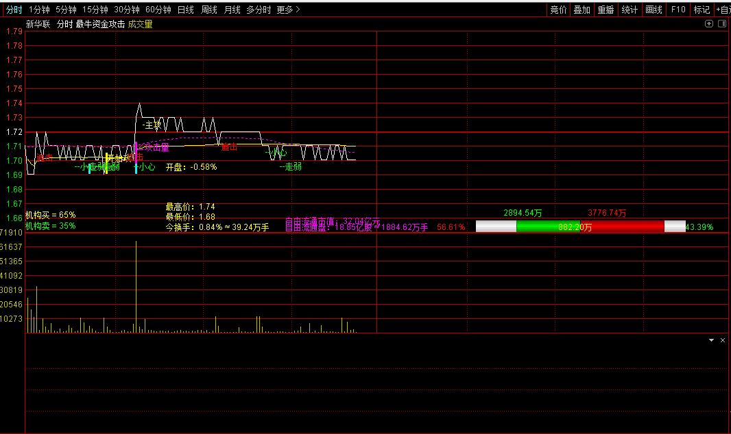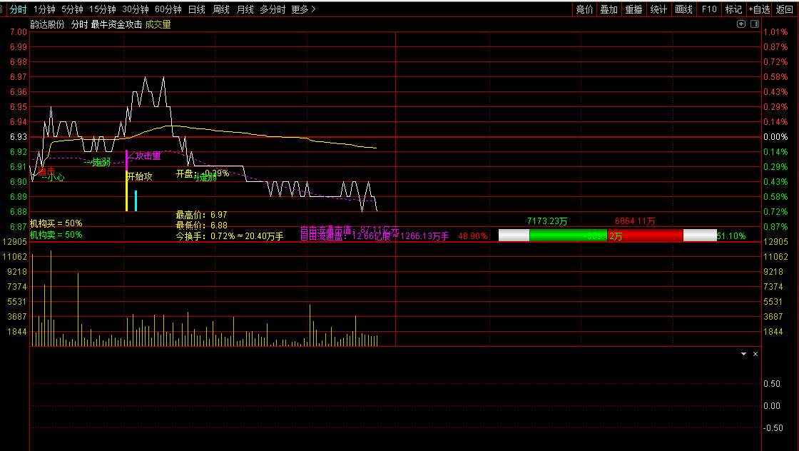 通达信【最牛资金攻击】分时主图指标,监控资金流,捕获可能涨停的节点!