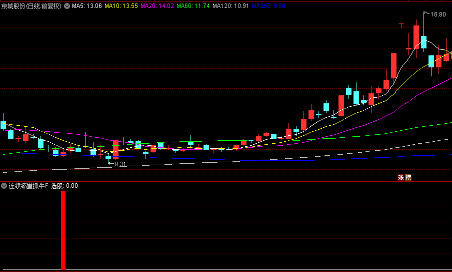 1.黄金买点信号:当中轴线下方出现红色量柱时,若伴随涨停板,这就是典型的"庄家锁仓"形态。