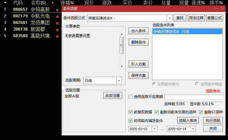 2.主力行为识别:TPB条件筛选放量假阴线洗盘形态;
