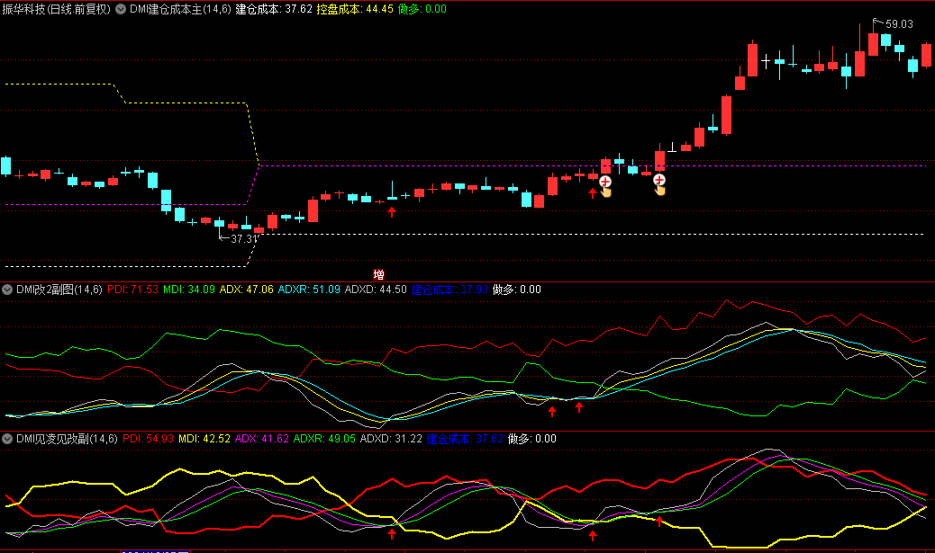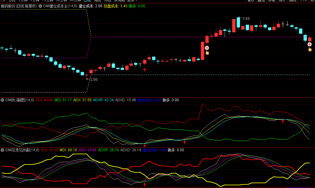 DMI建仓成本控盘成本主副图二合一,该指标不含未来函数!