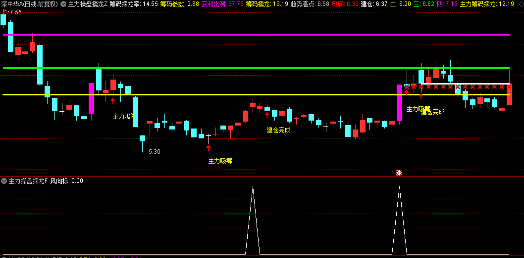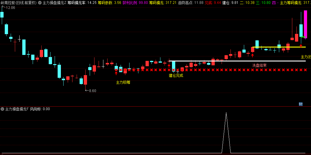 【主力操盘擒龙】主图/幅图/选股指标,主力操盘洗盘结束建仓拉升,底部跟庄擒牛启动点!