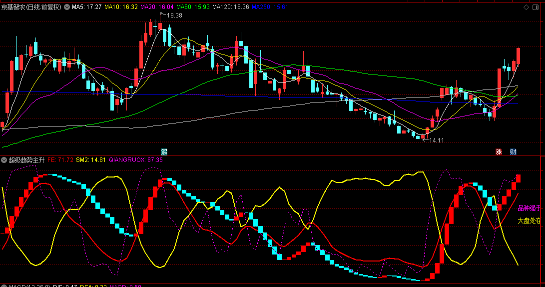 通达信【超级趋势主升动量】副图指标,动态波动率α策略,个股与指数相对强度分析的量化!