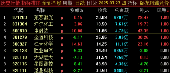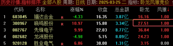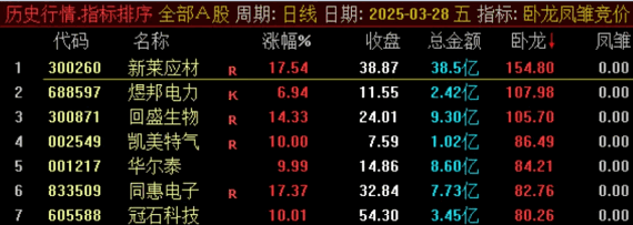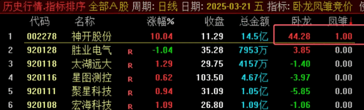 四月份第一帖通达信【卧龙凤雏竞价】副图排序指标,凤雏数值出现1,再看卧龙数值最大那个!