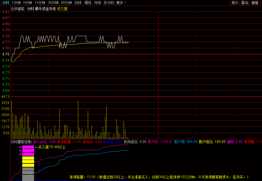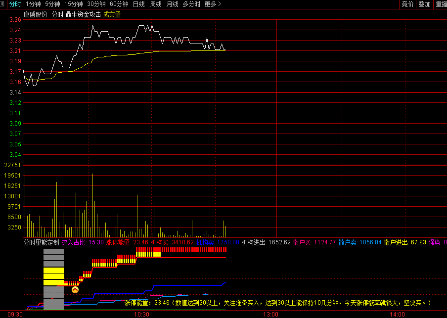 TAO宝买的【分时量能定制】分时副图指标,一图多用,分时量能抓涨停!