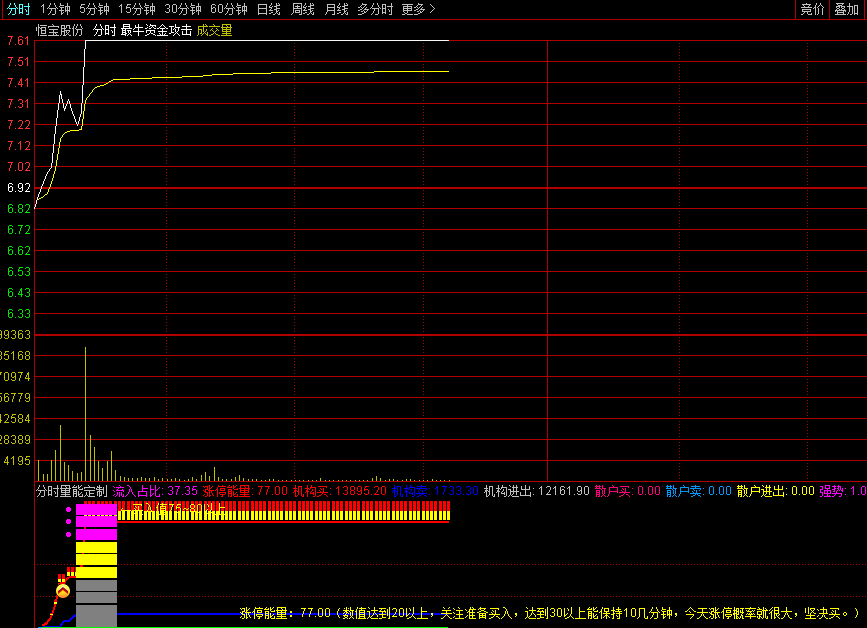 涨停能量值20以上关注,30以上保持十分钟涨停概率大。