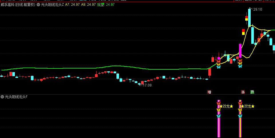 通达信【光头阳线龙头】主图/副图/选股指标,突破前高且量能持续放大,筹码峰单峰密集抓龙头!