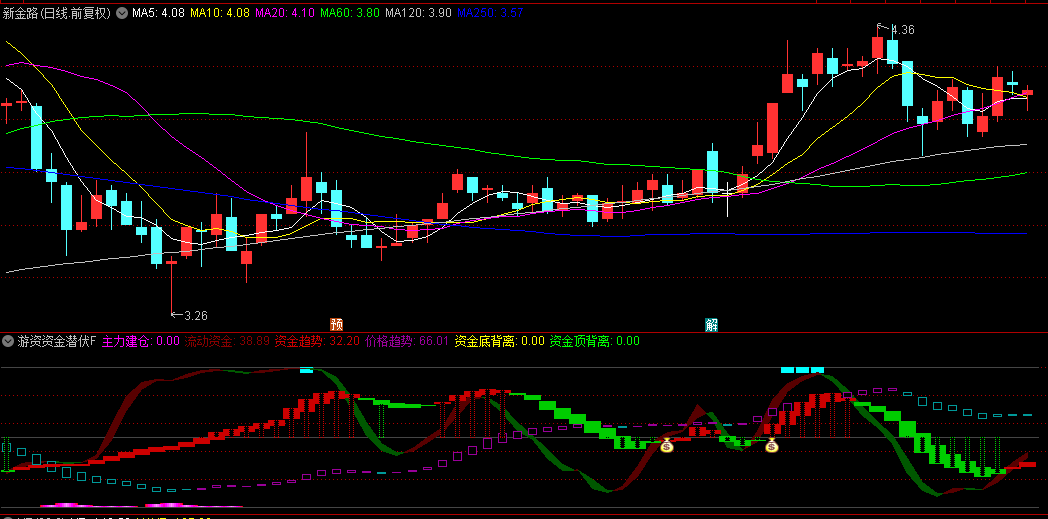 4、通过平滑移动平均等技术,追踪资金的长期和短期趋势,来把握市场的资金动向。