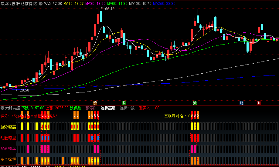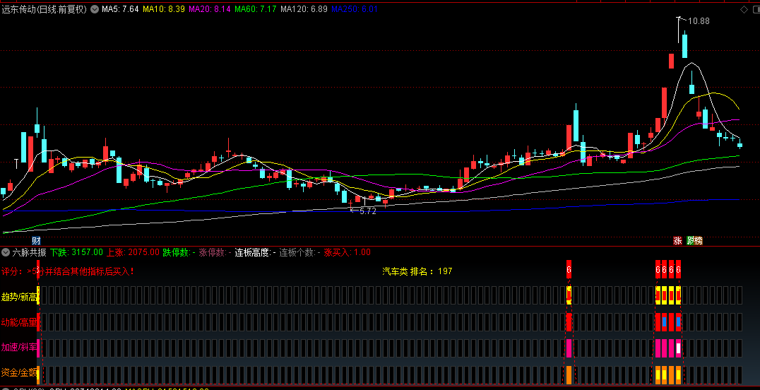 六脉共振指标,有别于论坛或网络上的传统指标,比如macd,kdj等等,而是在满足上述传统条件的情况下根据当下市场的交易脉络,自编的一套指标。