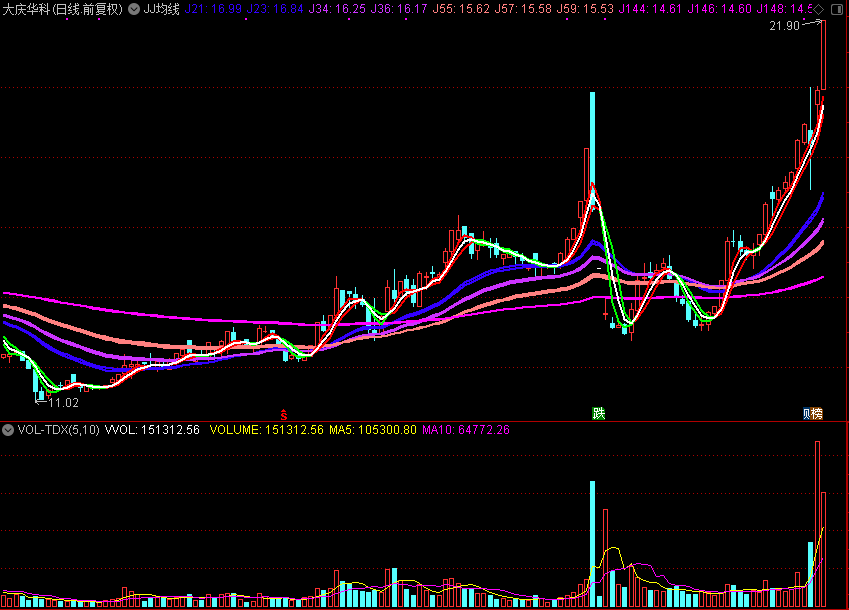 这是一个短期平滑均线+长期加权均线的组合,对于形态判断有很好的辅助作用,就我个人使用习惯上来说,均线使用其实比很多“神奇”指标的效果要好得多。贴图中很好的描述了股价一个完整的运行过程。