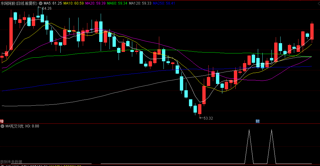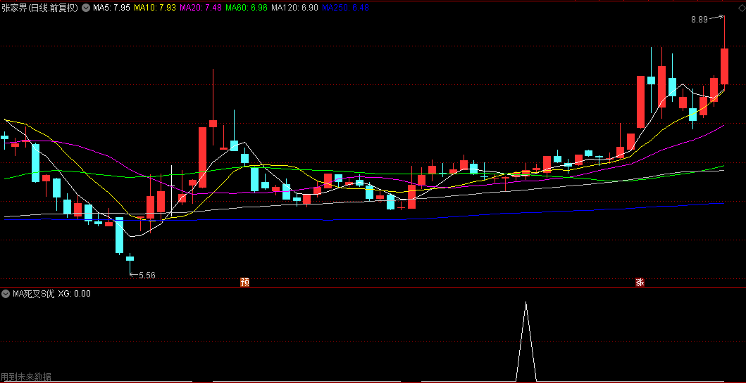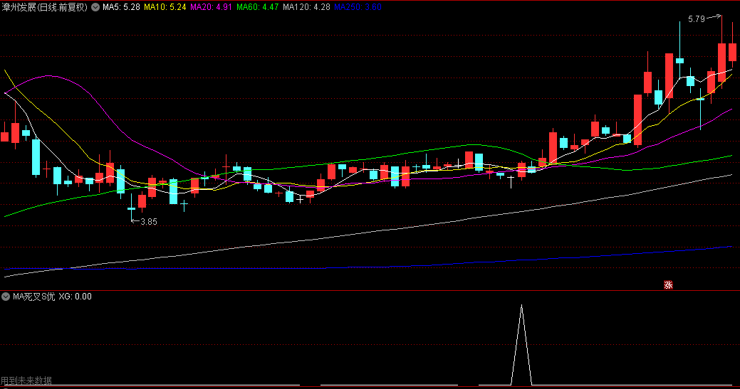 具体实施方法,将5和10均线死叉找出来,将其对的K线标志出来,
