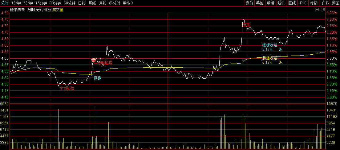 图上有分时抓板信号 还有显示收益率 指标只是工具 不作为买卖依据