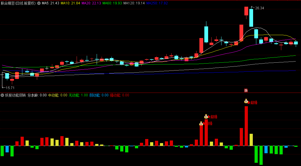 通达信【妖股动能弱转强】副图指标,直观明了的量能指标,弱转强捉妖信号准!