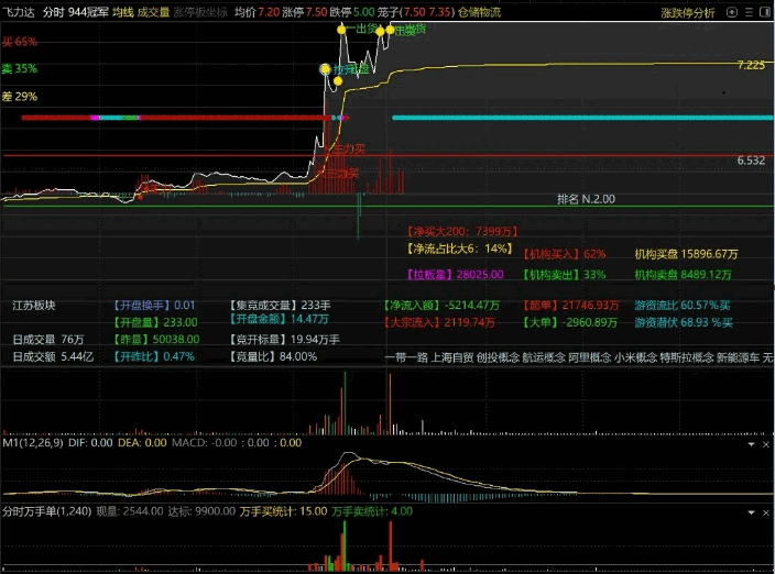 1.万手单分时捕捉 飞力达 300240 涨停板20%