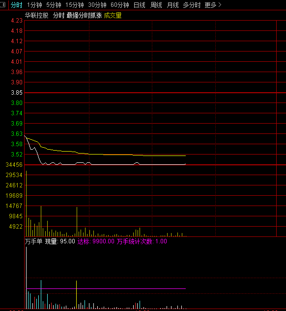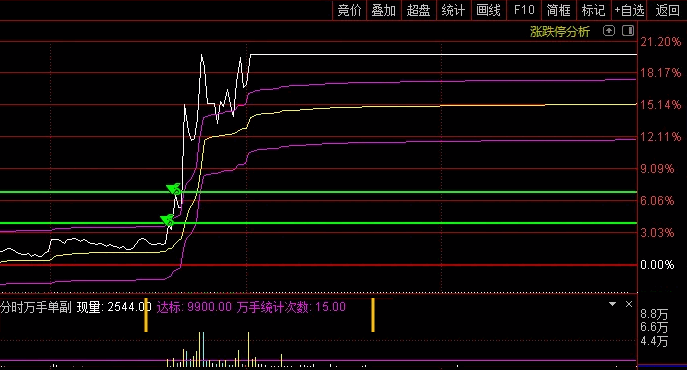 某款付费软件里面的【分时万手单】副图指标,配合捕捉涨停,判断涨停的绝妙辅助工具!