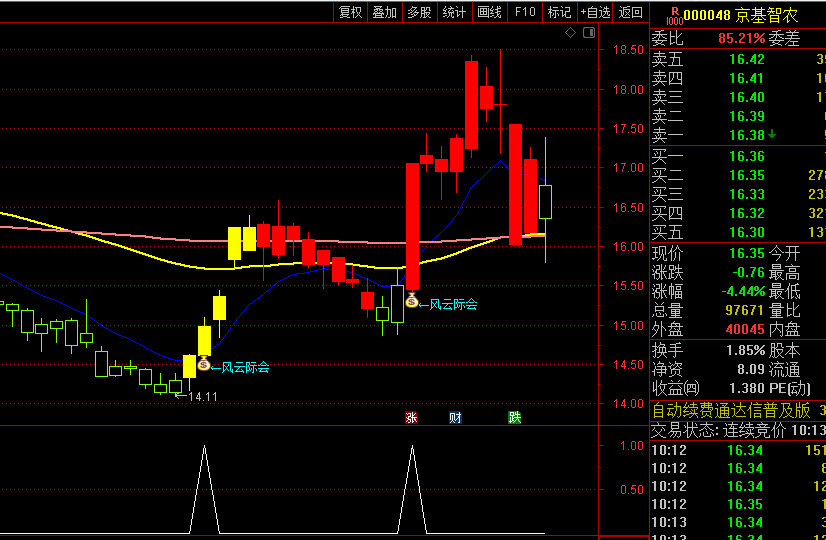 当出现黄色实体k线的时候,是股价的临界变盘点,如果出现钱袋子的信号标识,是买入信号,