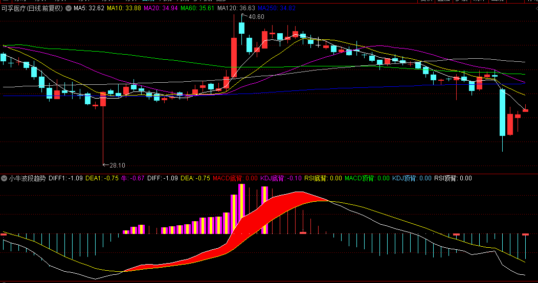 通达信【小牛波段趋势】副图指标,多周期共振原理捕捉波段买卖点,特别适合震荡行情中的趋势交易